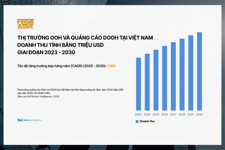Theo báo cáo từ Mordor Intelligence (2025), thị trường quảng cáo ngoài trời (OOH) và quảng cáo kỹ thuật số ngoài trời (DOOH) tại Việt Nam được định giá 119,9 triệu USD vào năm 2025, và dự kiến đạt 127,14 triệu USD vào năm 2030, với tốc độ tăng trưởng bình quân (CAGR) 1,18% trong […]